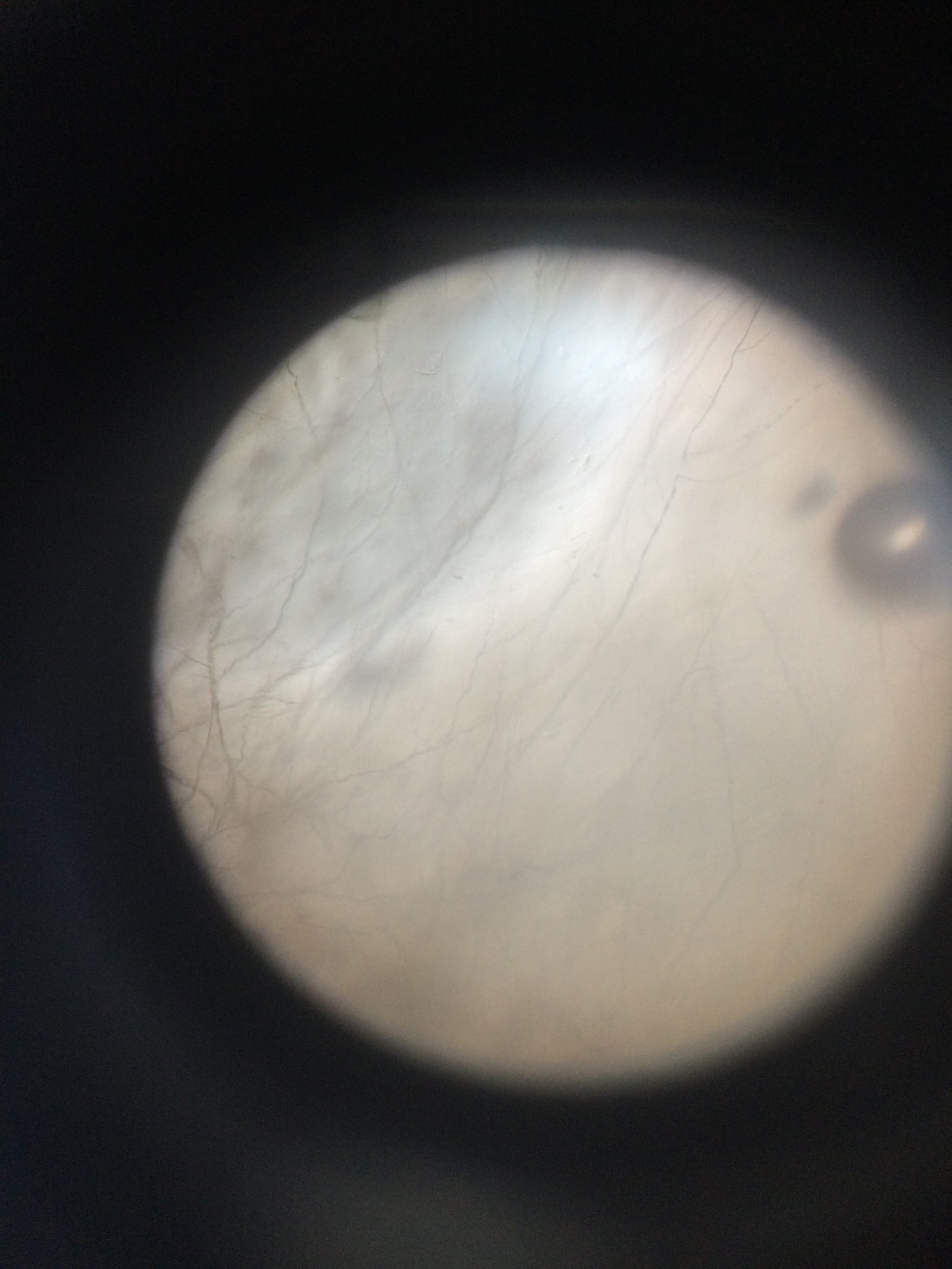 Сейчас на чаше эти штуки пропали и их не видно, но выглядело это как тоненькая белая паутинка по краю среды (рисунок схематичен, надеюсь, тут всё понятно):