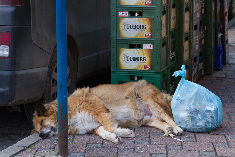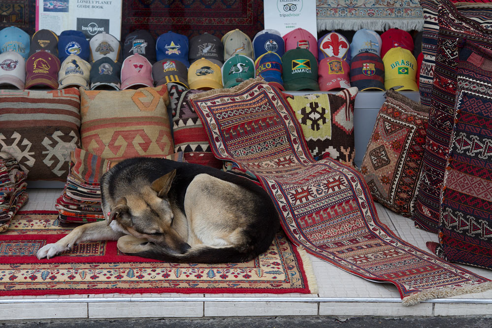 Собачки тут безобидные. Все с пластмассовыми клипсами на ушах. С людьми стараются не общаться без нужды. Ну вот, разве что эта, во дворце Топкапы нашла человечью вещь и решила поменять ее на что-нибудь нужное собаке. Нам было не надо, увы, да и собачьего у нас не было.