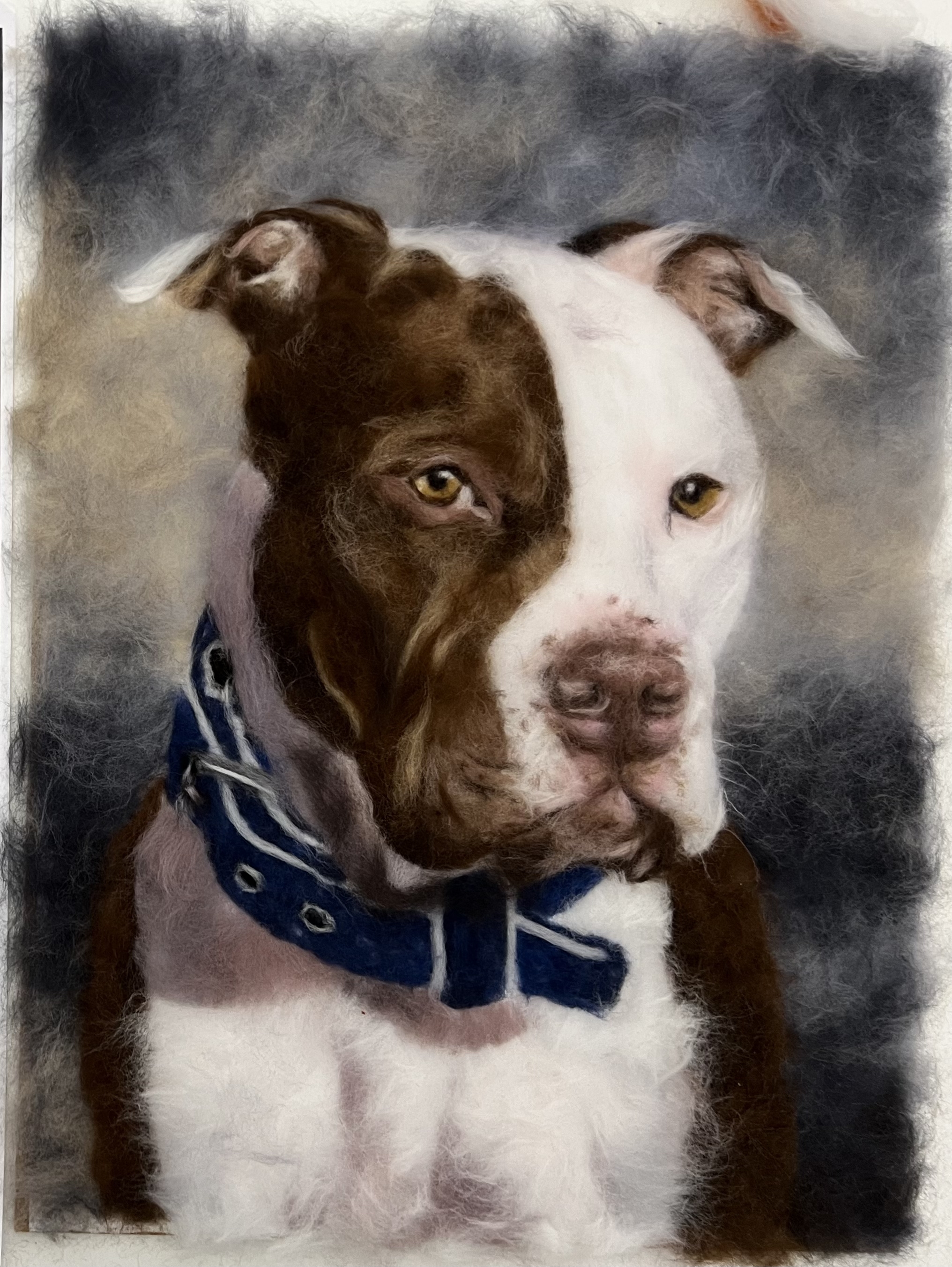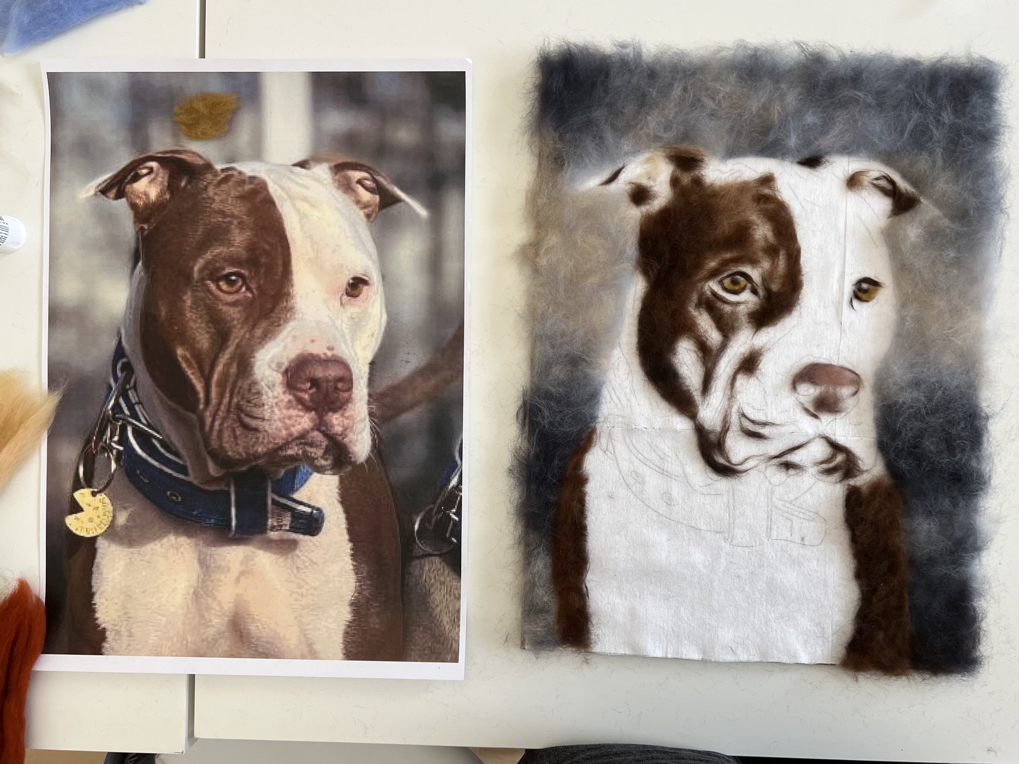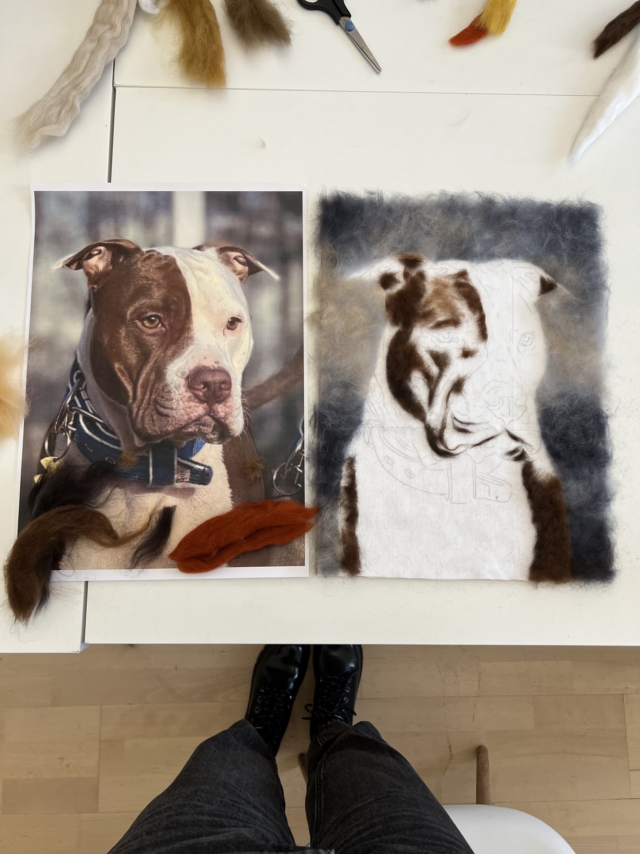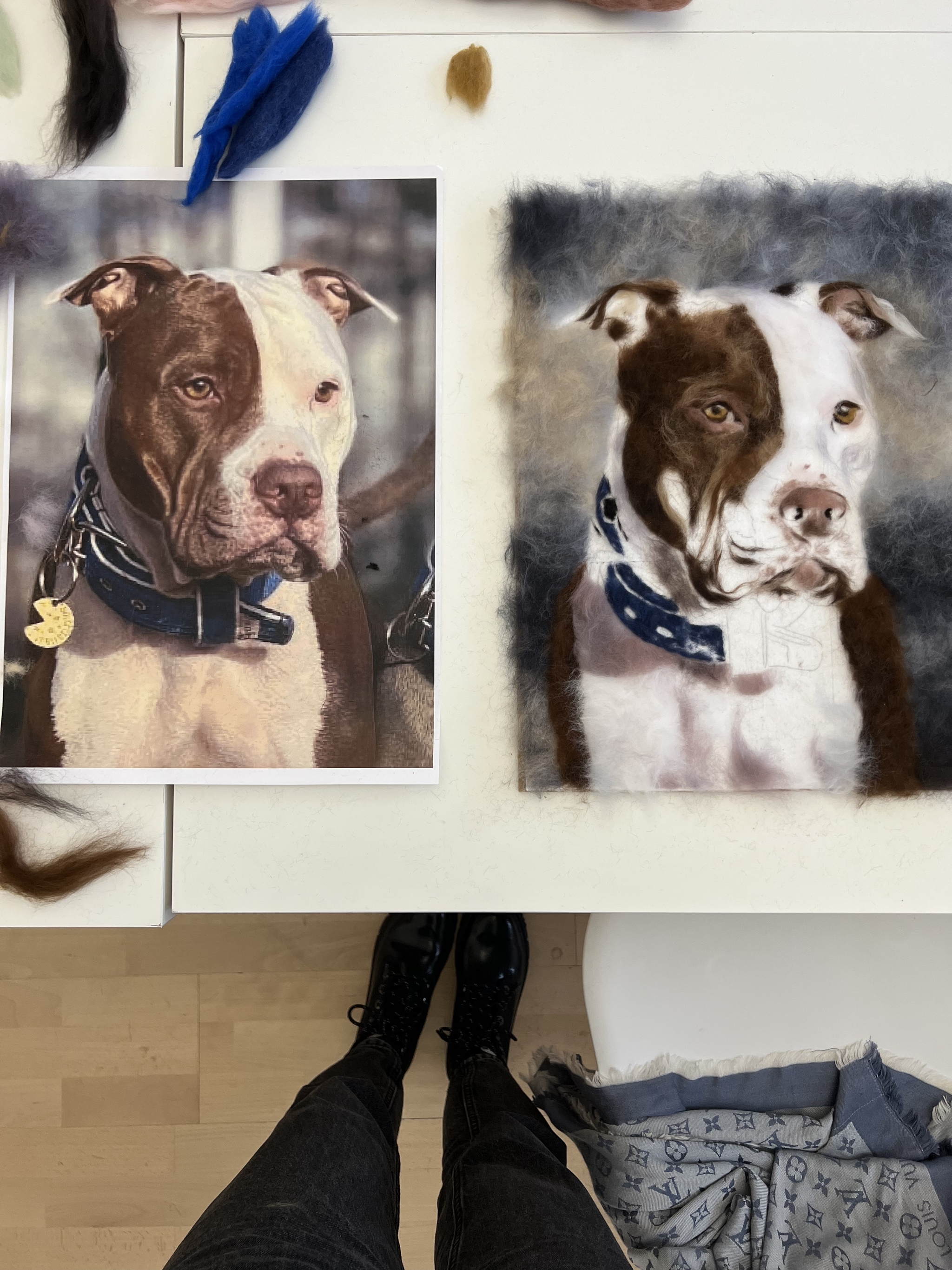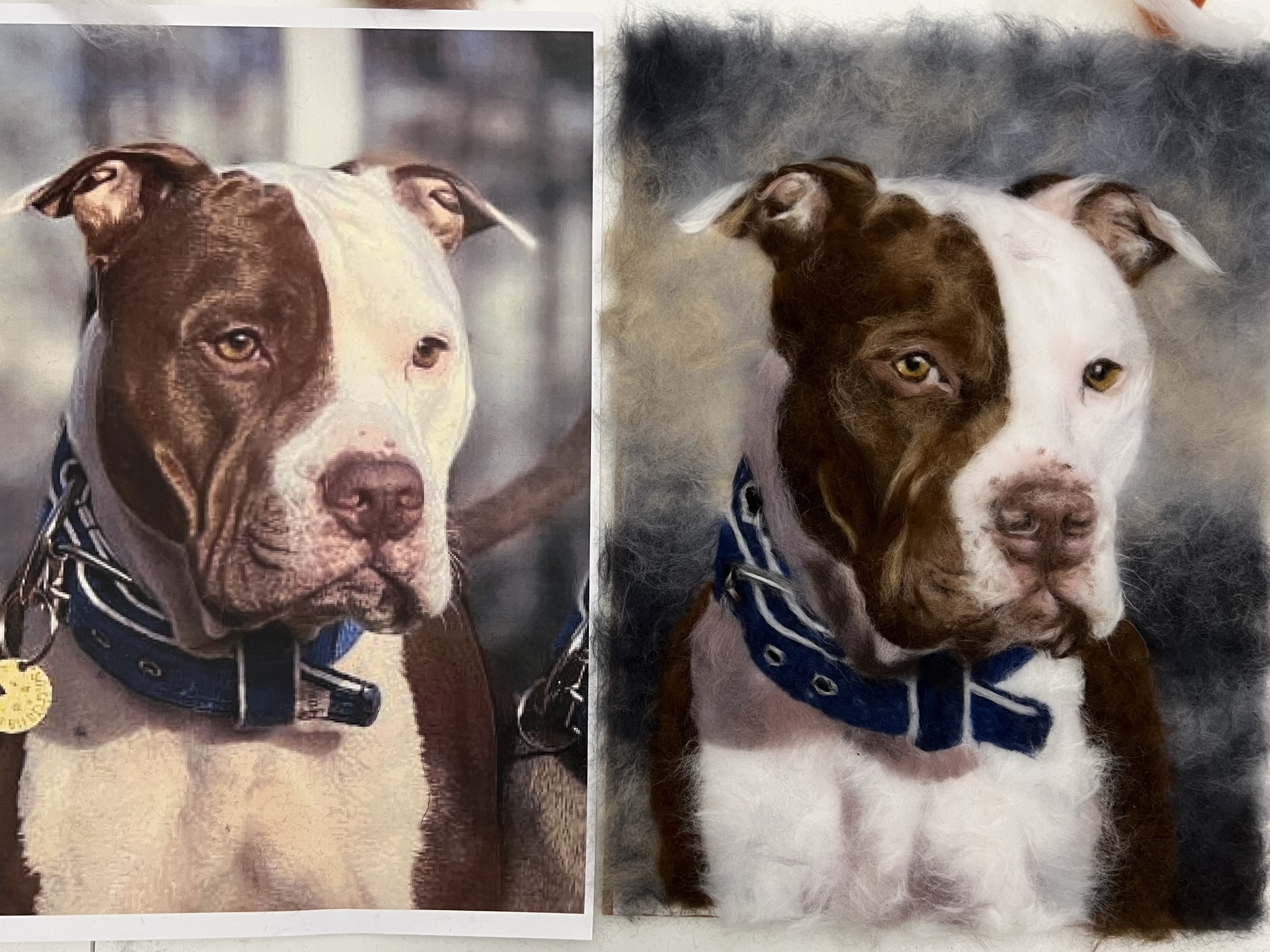 На фото, слева распечатанное фото, справа сам портрет шерстью.