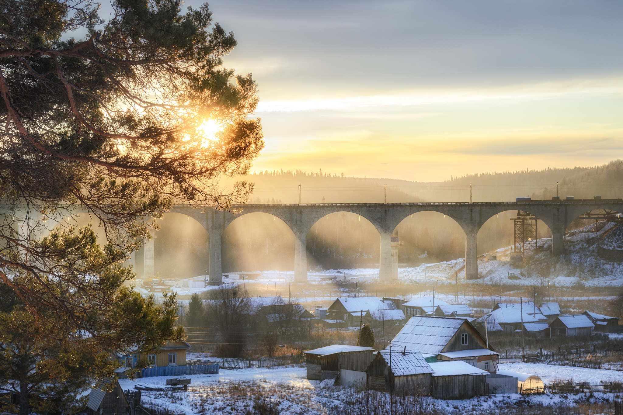 Живописный вид на виадук близ поселка Пудлинговый, Свердловская область
