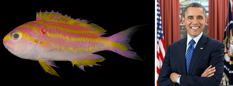 "Tosanoides obama" - рифовая рыбка, обнаружена в ИЮНЕ 2016, и названа в честь вот этого вот, только потому что была обнаружена на его родине- Гавайских островах, Обитает исключительно в заповеднике Papahānaumokuākea