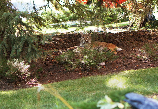 Вот эта красавица только что поймала и съела зайца с первой фотографии. Бобкат.