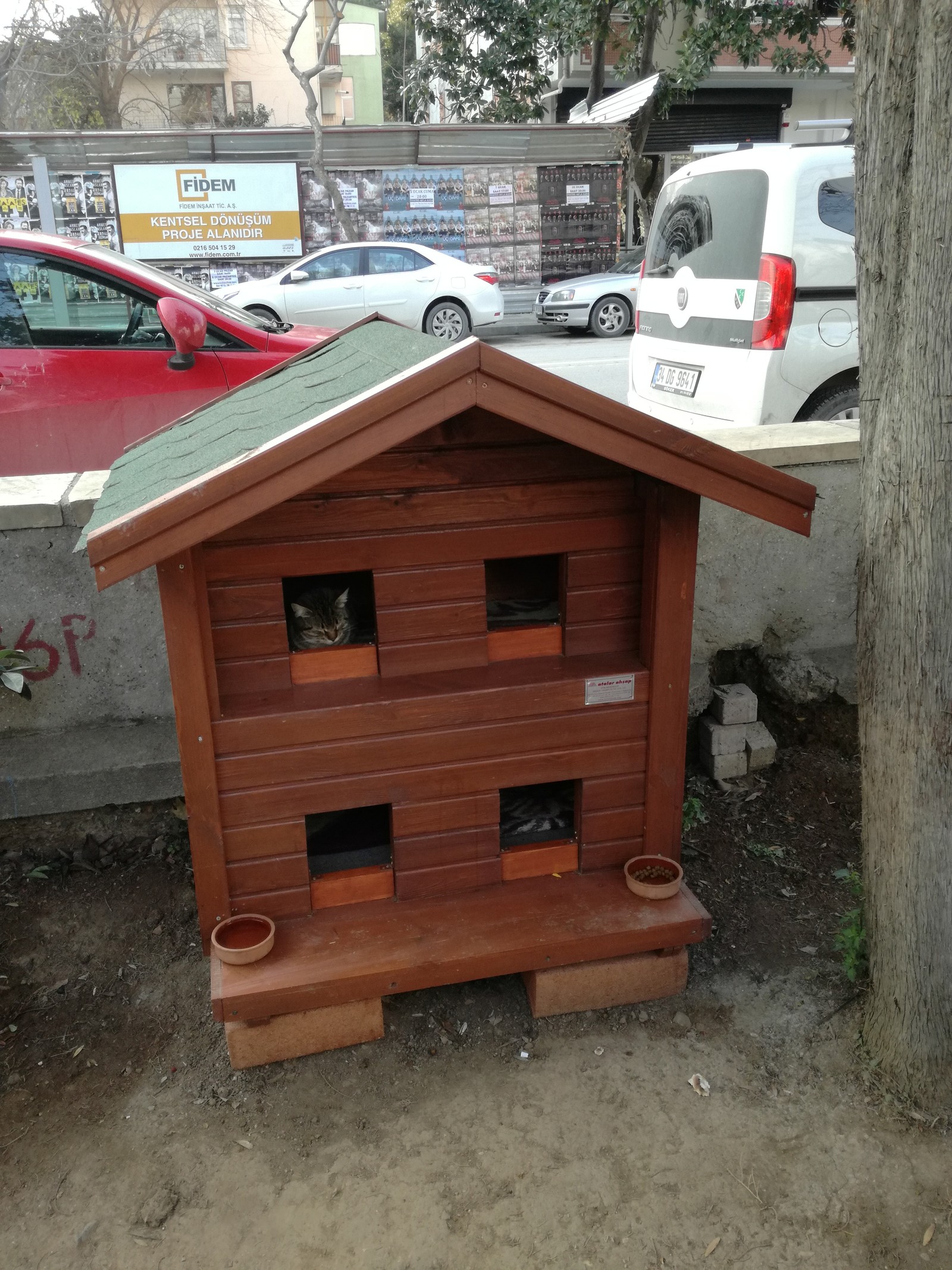Для животных ставят на улицах поилки, миски, лежаки и даже специальные домики. Вот к примеру один из домов для котов
