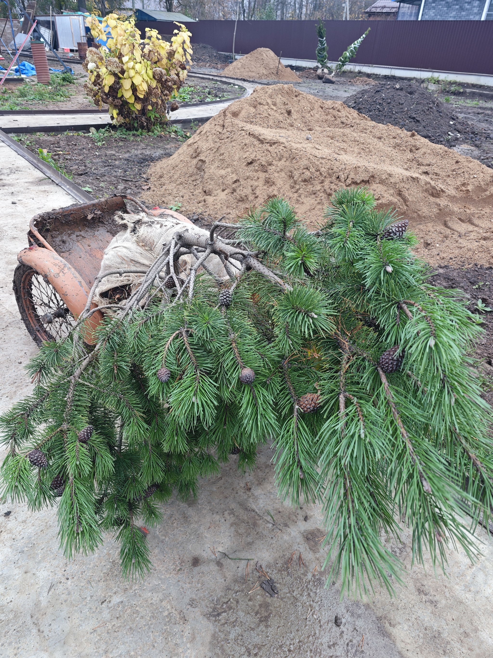 На улице +5, дождик, а мы роемся в земле как кроты. Награда - первые деревца, которые начали менять вид участка)Это скелетные посадки, к ним в следующем году будет подсаживаться мелкий кустарник, чтобы создать ярусную композицию.