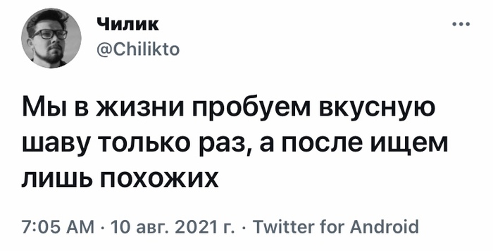 Была крутая на Наставников, в Санкт-Петербурге (хотя мог и не уточнять - шаверма жы, а не шаурма). С зелёным соусом, вроде с добавлением лайма и какой-то зелени через блендер. Я иногда в шавухах просил добавить мне в шаву в лаваше картошку фри, и в некоторых на меня смотрели, как на дебила, а у них она была в меню - Ливанская называлась. Так как-то раз я друга и его девушку пригласил отведать сии явства у нас на раёнё, время под 22-00, а там очередь - 10-15 человек на улице, и ещё 3-4 внутри этой будочки. Дождались, поели, согласились со мной, что это лучшая шавуха в городе. А потом затеяли чинить дорогу, менять трубы, отрубили у них электричество на2 недели. Сначала просто висела табличка "временно закрыты", а потом я как-то мимо проходил и этой будочки просто не стало Т_Т