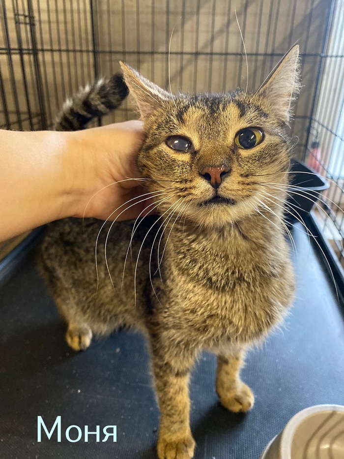 Найден был вместе с Бузей и Анькой осенью позапрошлого года. У него бельмо на глазике оставшееся от перенесённой в котячестве инфекции. Но это не делает его некрасивым.