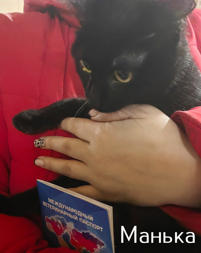 Прямо с передержки уехала домой чёрная кошечка из тех что нашли в коробке на перекрёстке. Назвали её Манька и обещали прислать фото из дома.