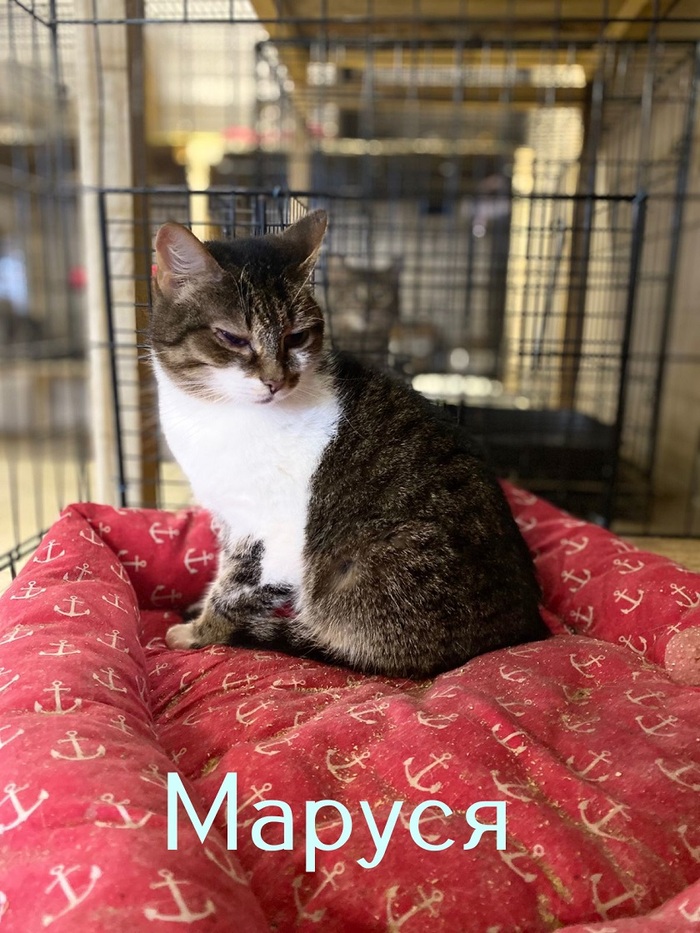 Так-же приехала с передержки кошечка по кличке Кися. У неё был обнаружен лейкоз и поэтому она поселилась в один ряд с такими-же лейкозниками.