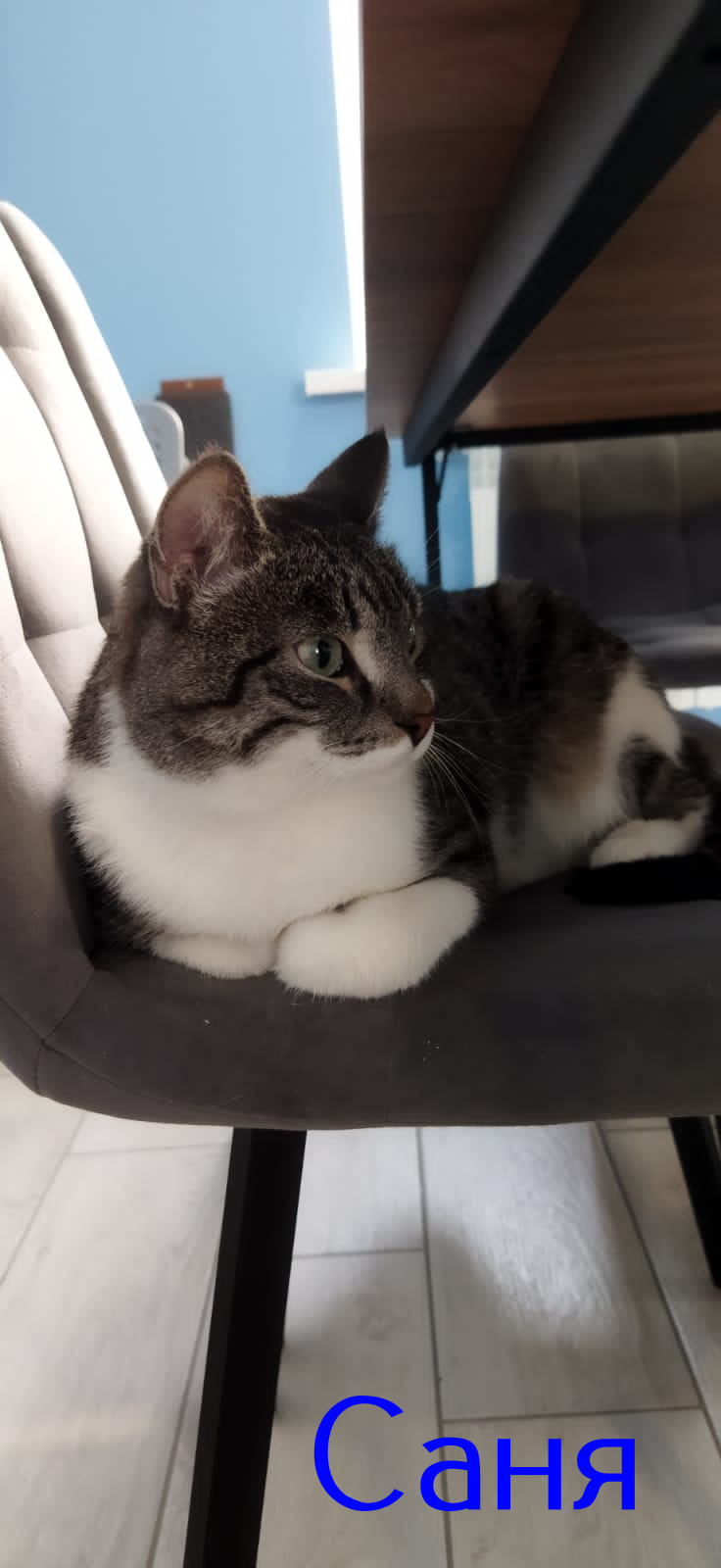 Наши как выбрались из переносок так пошли все по разному себя вести. Шаман лёг под стол хозяйки котокафе и позволял людям подползать к нему на коленях и гладить его. Микки нашёл какую-то полочку в тёмном углу и ушёл туда страдать от какой-то им самим придуманной депрессии. Саня же напротив повёл себя как старожил. Сразу всё оббегал, нашёл шарик кошачьей мяты, нализался как скотина и лёг дремать на стуле)