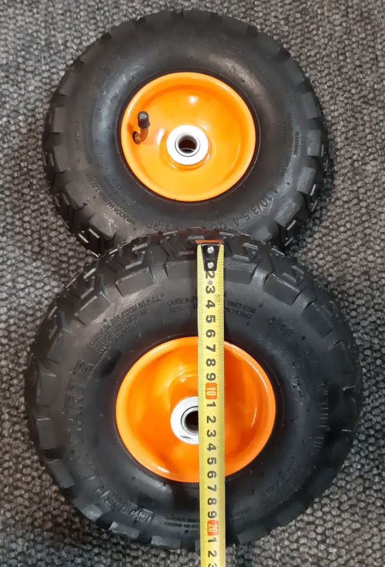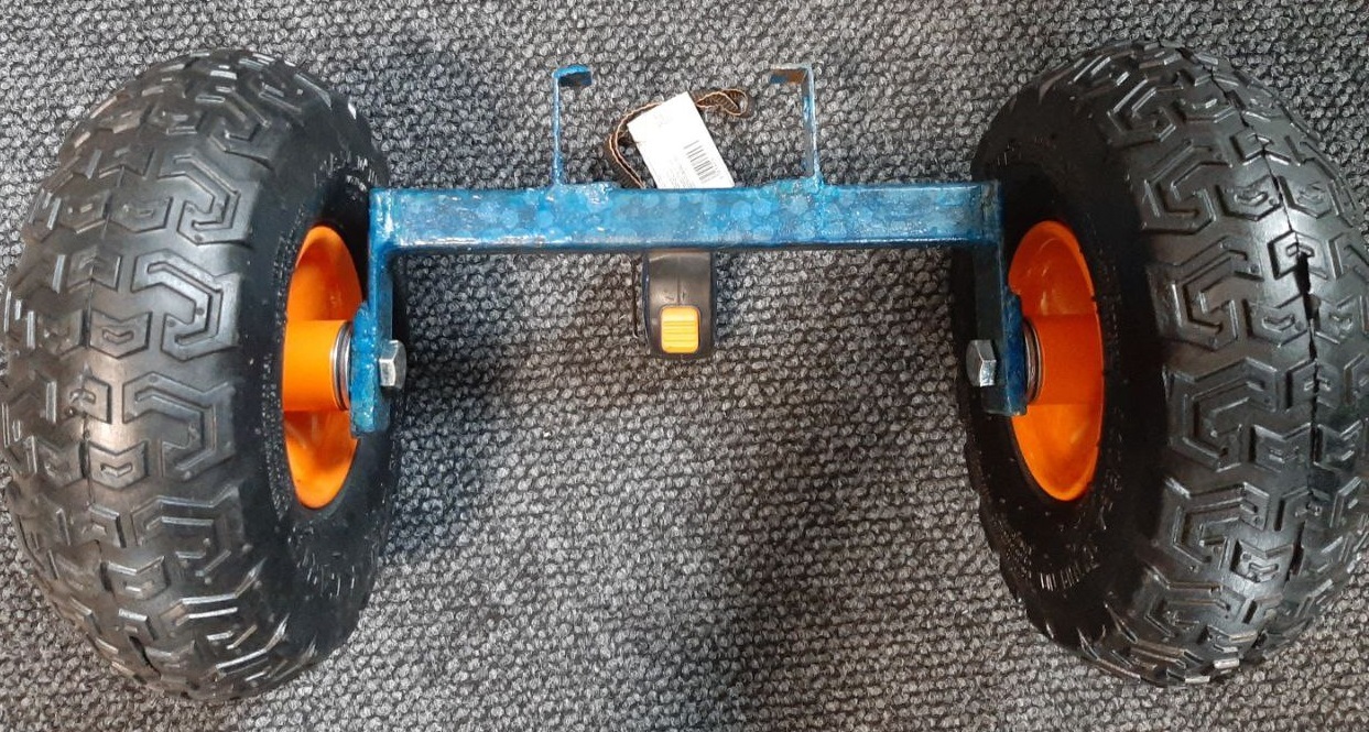 С крепежом получилась катавасия, что-то взбрело мне в голову, что 75 мм длины болта будет достаточно. Купил 2 болта 12х75, шайбы, гровера и гайки. Приехал домой и вот хера с два, не хватило длины болта. После обеда опять в маркет, купил еще длинную шпильку на 12, и 2 болта 12х120 (психанул, чтобы точно хватило) и опять что-то мне в голову вступило и вместо 12 мм гаек я прихватил 10мм (дааа, старость не радость). Ну да ладно, собрал колесики со стойкой: