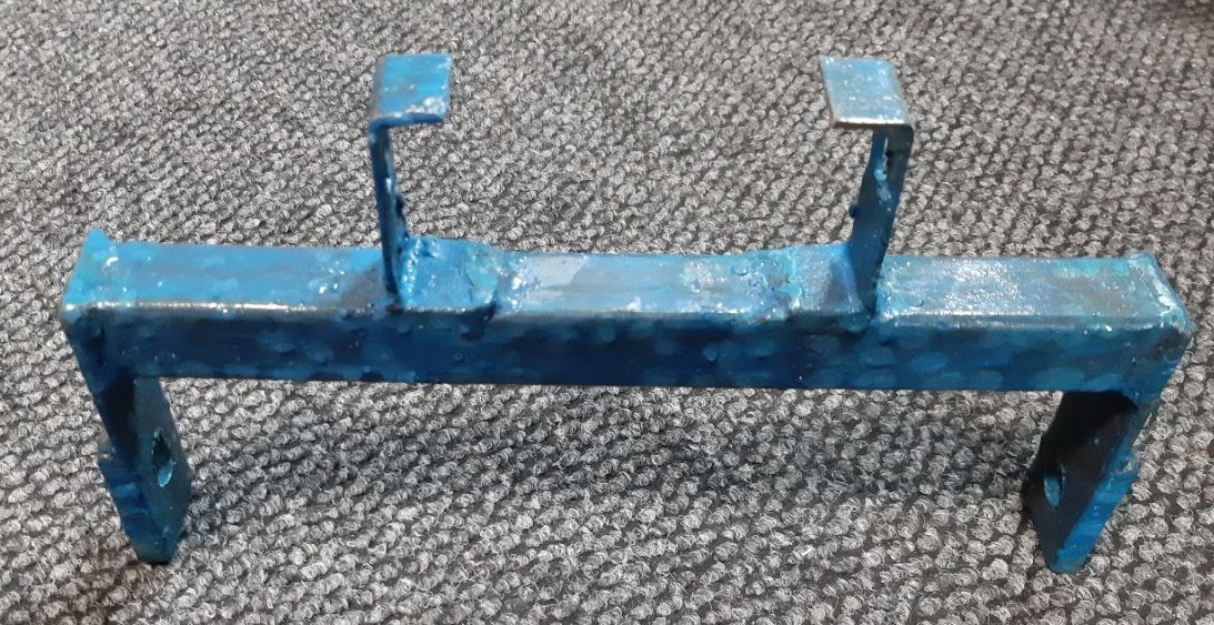 Чтобы высота тачки не изменилась, Нужно ось новых колес немного опустить. Берем из остатков всякого металла подходящие огрызки, немного замеров, отрезов и сварки трясущимися руками от которой в итоге получил загар-ожег одной руки и немного груди получаем вот эту конструкцию (уже покрытую грунт-эмалью по ржавчине):