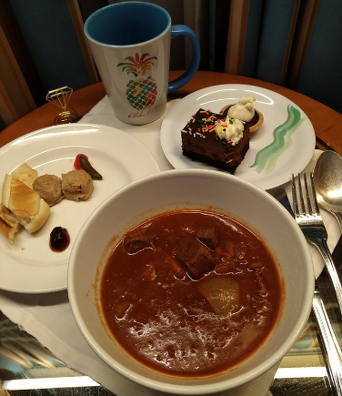 «Наш ужин уже доставили в каюту! Тушенная говядина. Капитан объявил, что доставлять еду в каюты будут максимально быстро. Я думаю, что экипаж делает все возможное. Спасибо!», - рассказывает пассажир из Японии.