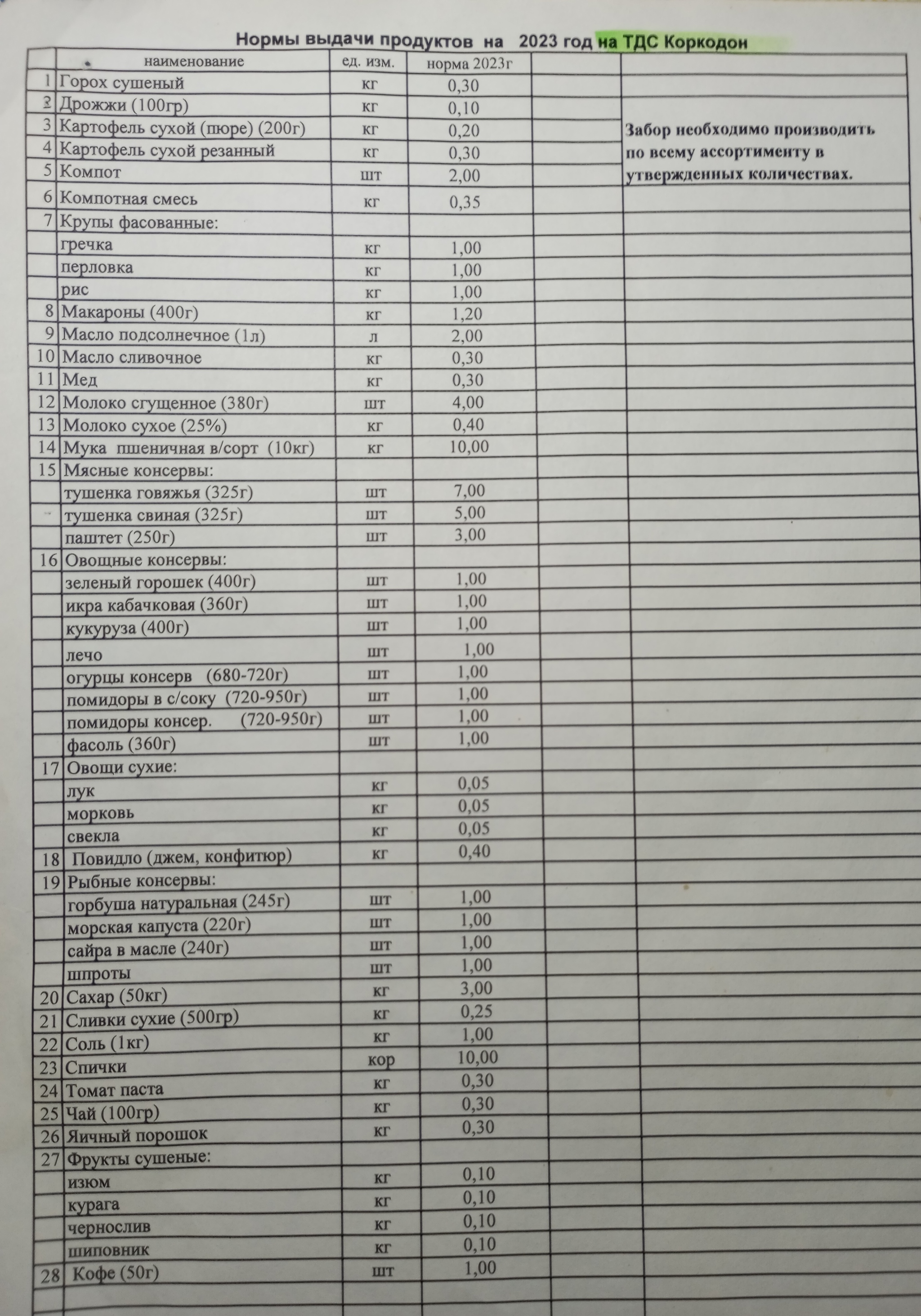 Продукты и ГСМ не нужно заказывать, потому что это само управление привозит на год, в зависимости от количества людей на станции.