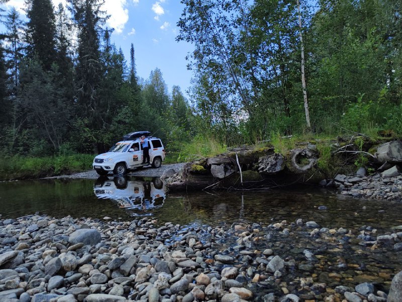 До следущего поселка, Ушмы, последнего места с людьми, около 60 километров и два сложных брода. В дожди вода в реках поднимается настолько, что порой и вахтовки камазы сносит течением. Раньше тут были мосты, но после закрытия спец. поселения в Ушме все мосты до этого поселка были сожжены, как считают местные, охотниками.