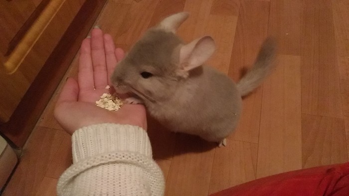 Жить с шиншиллой - это приманивание на вкусняхи (потому что вкусняшки любят все)