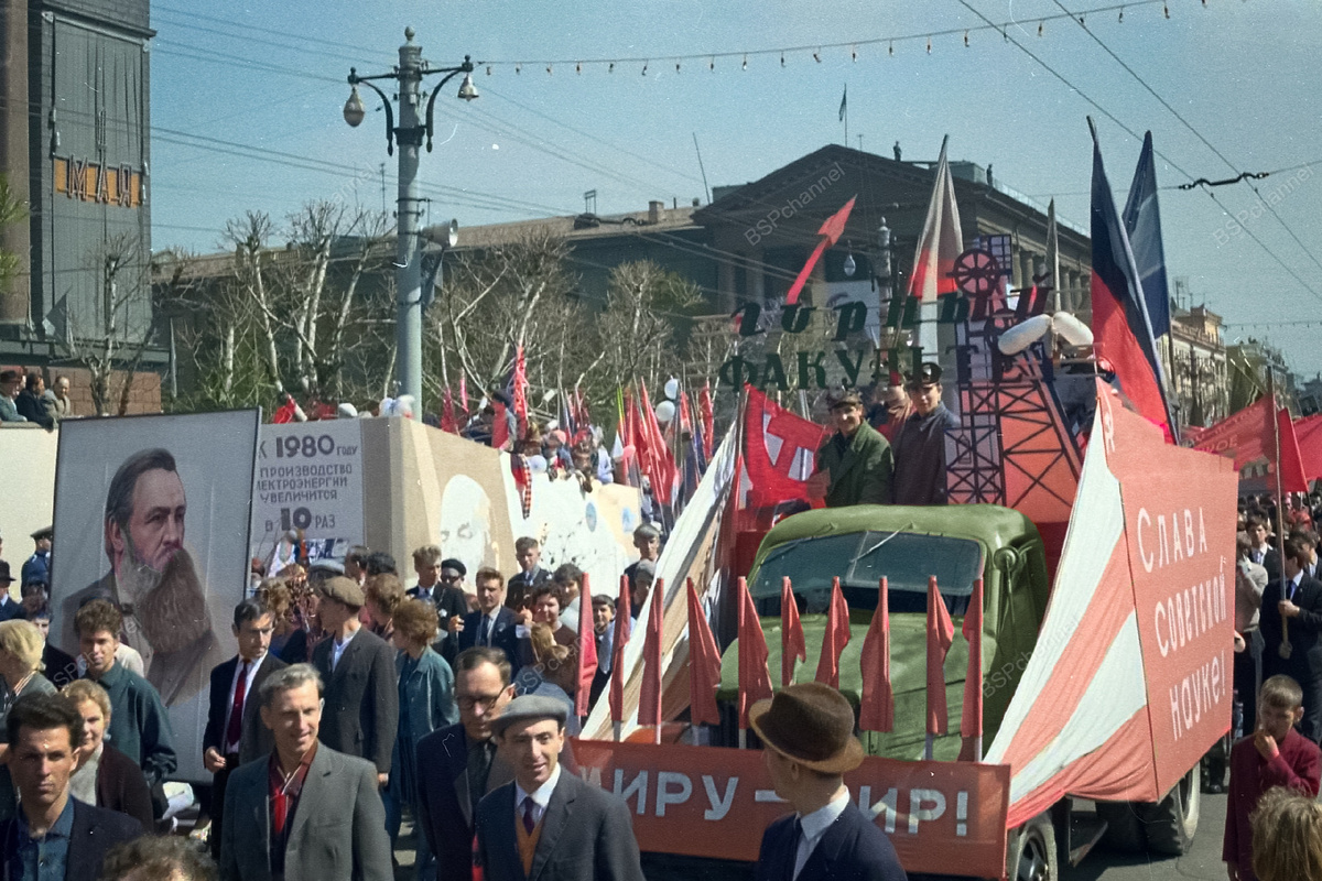 Колонна Красноярского института цветных металлов им. Калинина на первомайской демонстрации.