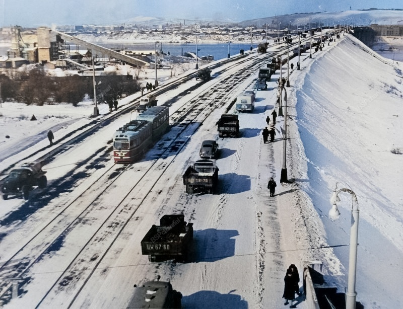 Движение транспорта на Коммунальном мосту в зимний период, 1961 год.