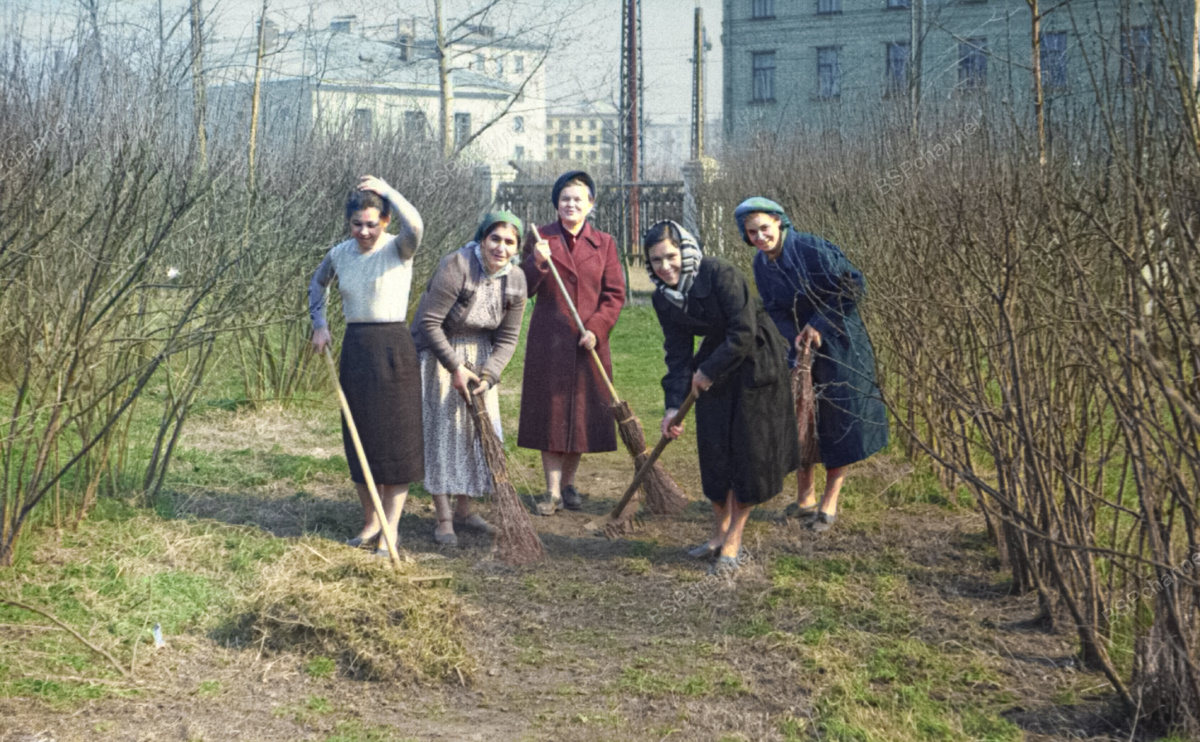 Субботник на территории 28 поликлиники, 1960 год.