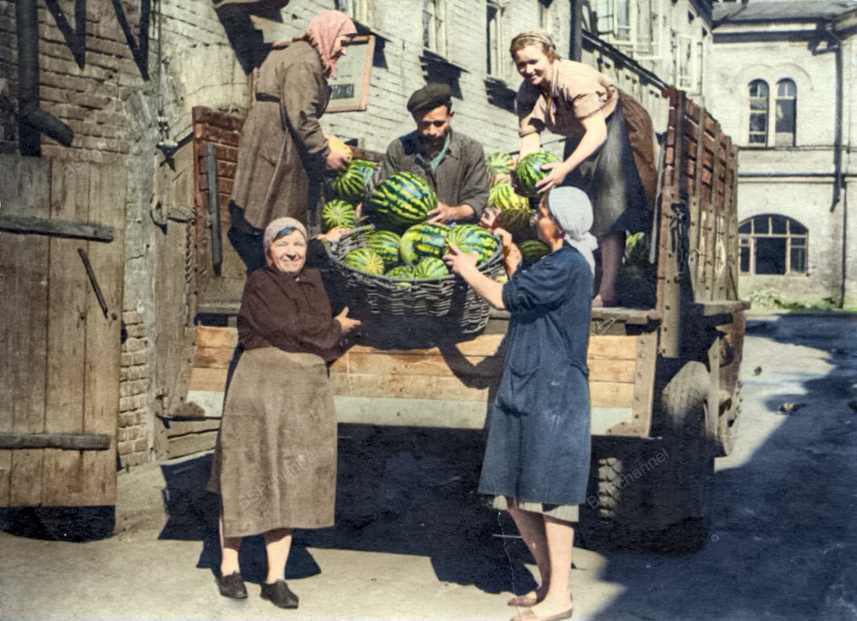 Арбузы централизованно завозили баржами по Волге в Горький и в другие города Советского Союза.