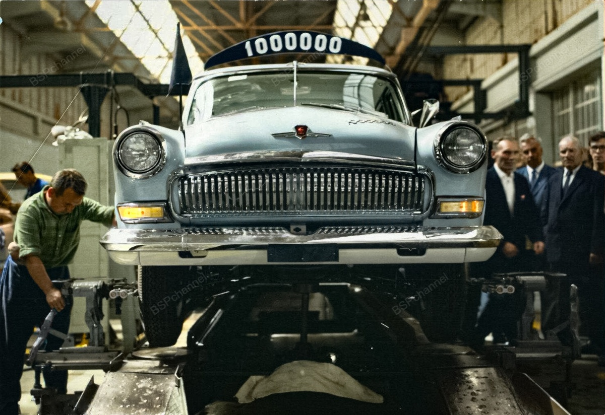 Горьковский автомобильный завод. Миллионный легковой автомобиль на конвейере ГАЗ, 1967 год.