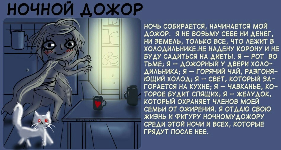 Оу,да я сам бездельник,но я почему-то всегда представлял в таких постах человеков,которые целенаправленно просыпаются ночью чтобы схомячить что-то и идут дальше спать.