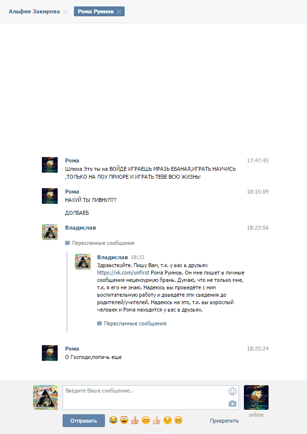 Как видим, кроме необоснованной нецензурной брани его сообщения ничего не содержали.