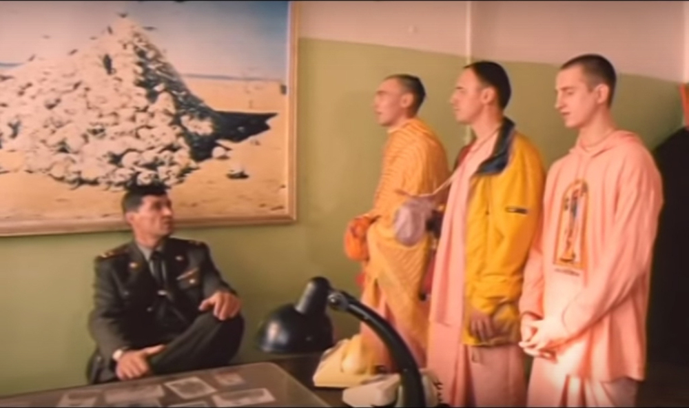 — Всё, вы нам подходите. И говинда ваша ничего. Жидковата, но ничего. И стричь вас опять же не надо. И люди вы, видно, выносливые: 4 часа «Харе Кришну» орать — это не каждый сдюжит… Пойдёте в химвойска