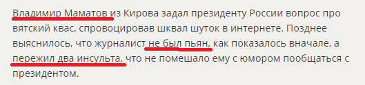 Ты конечно извини, но: 1 Человек в здравом уме будет задавать вопрос о квасе президенту? 2 Он из Турции? Бонусом - я уверен когда в редакции узнали о его провале сразу выдумали "инсульт"