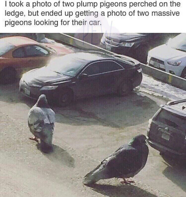 krasnayaopasnaya Баяны Жуть) 7 лет назад Я сделал фото двух пухлых голубей, усевшихся на карниз, но все закончилась тем, что у меня есть фото двух огромных голубей, ищущих свои машины. Любительский перевод Голубь Парковка