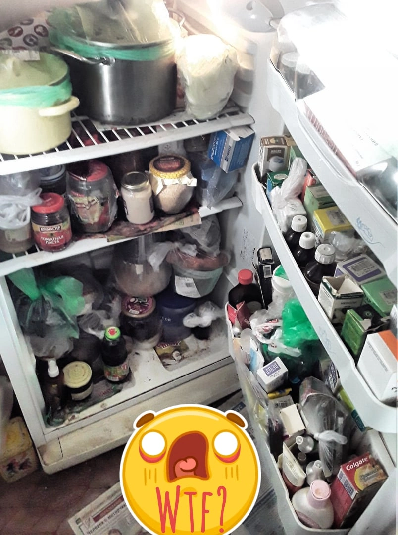 Холодильник! Большая часть продуктов??? - протухла, воняет. Человек с этим ничего не хочет делать, все надо.