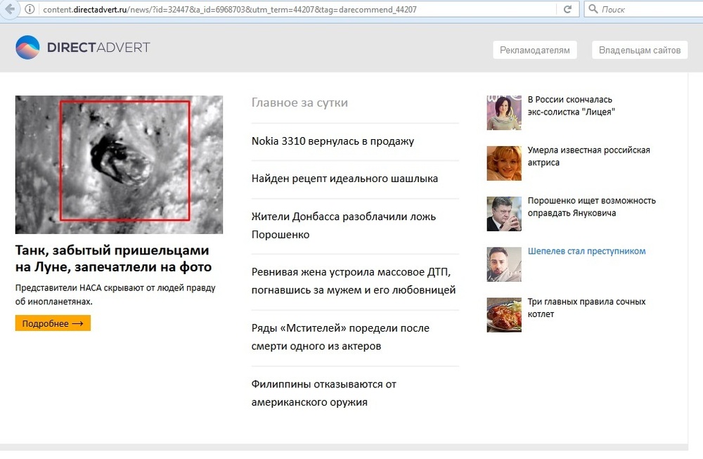 Опять же. Так можно "наебывать" сколько угодно раз, так как для пользователя товар по рекламе не связан с говноновостями и сайтом прослойкой. Пользователь в восторге от своей сообразительности что не поверил во взрыв атомной бомбы, покупает с огромной скидкой "уникальную красную нитку из израиля" или "специальную жидкость для мытья яиц". И гомна на палочке больше чем можно представить и сообразительных пользователей больше 15 миллионов! Ваш кэп.