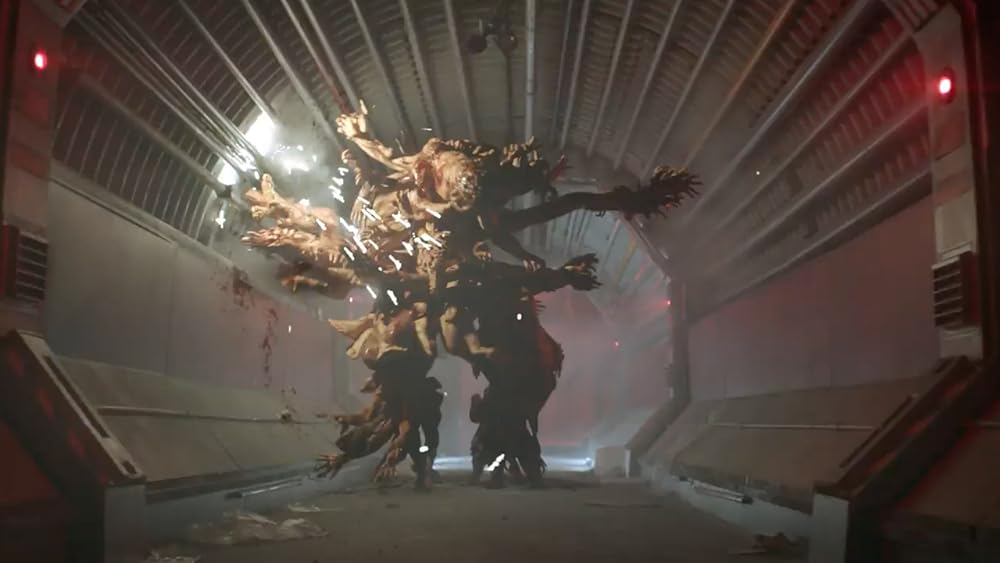 И если первая часть это Постапокалипсис, в котором инопланетяне поработили и уничтожили землю, Вторая это история о том что было если бы герои сериала пацаны существовали во вьетнаме, третья это отношение бога и людей к богу, то эта часть, это что то из разряда чужого, где весь экипаж умер, а на корабле остались лишь двое выживших, которые пытаются убежать от монстра. Да, банальность, но почему нет?