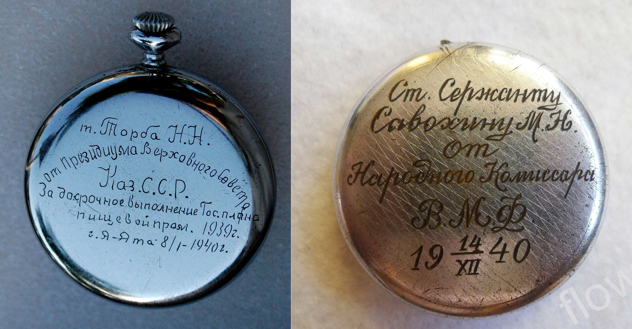 У меня в коллекции к сожалению пока только послевоенные часы, есть датированные 1947 и 1949 года и не датированные.