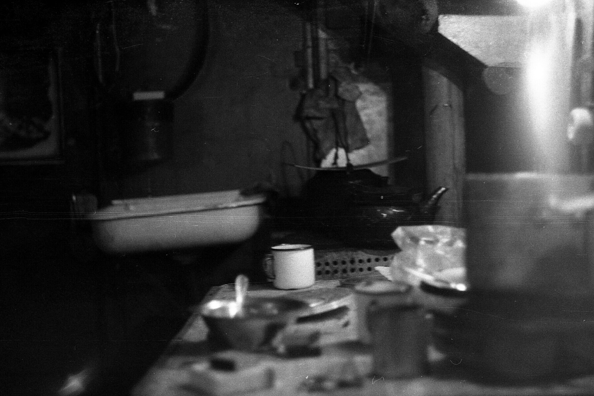 И вот в тот самый момент, когда я бегал снимать оленей, Женя приготовил на Игоревой станции рагу из песца. Но то ли он поторопился с мясом, то ли песец оказался не особо свежим, только через час после приёма пищи Евгений страстно захотел выйти освежиться и полить фикус. Через пару таких прогулок ему пришло в голову, что если бегать в одних трусах, то снимать каждый раз штаны будет необязательно, что значительно облегчит весь процесс. Женя оставил штаны в балке и выскочил на улицу в очень оригинальном наряде: в трусах, валенках и телогрейке на голое тело. И только захлопнув дверь балка он неожиданно понял, что ручка от двери осталась лежать в кармане брюк. Отвалилась она довольно давно, но у Игоря никак не доходили руки прикрутить её обратно. Так и таскал эту ручку в кармане, а при отъезде передал Жене.