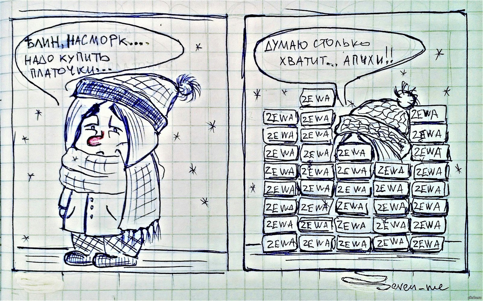 KEHbKA Зима близко. 10 лет назад Моя подруга любит рисовать комиксы про себя. с её позволения ставлю тег "моё" [моё] Зима Насморк