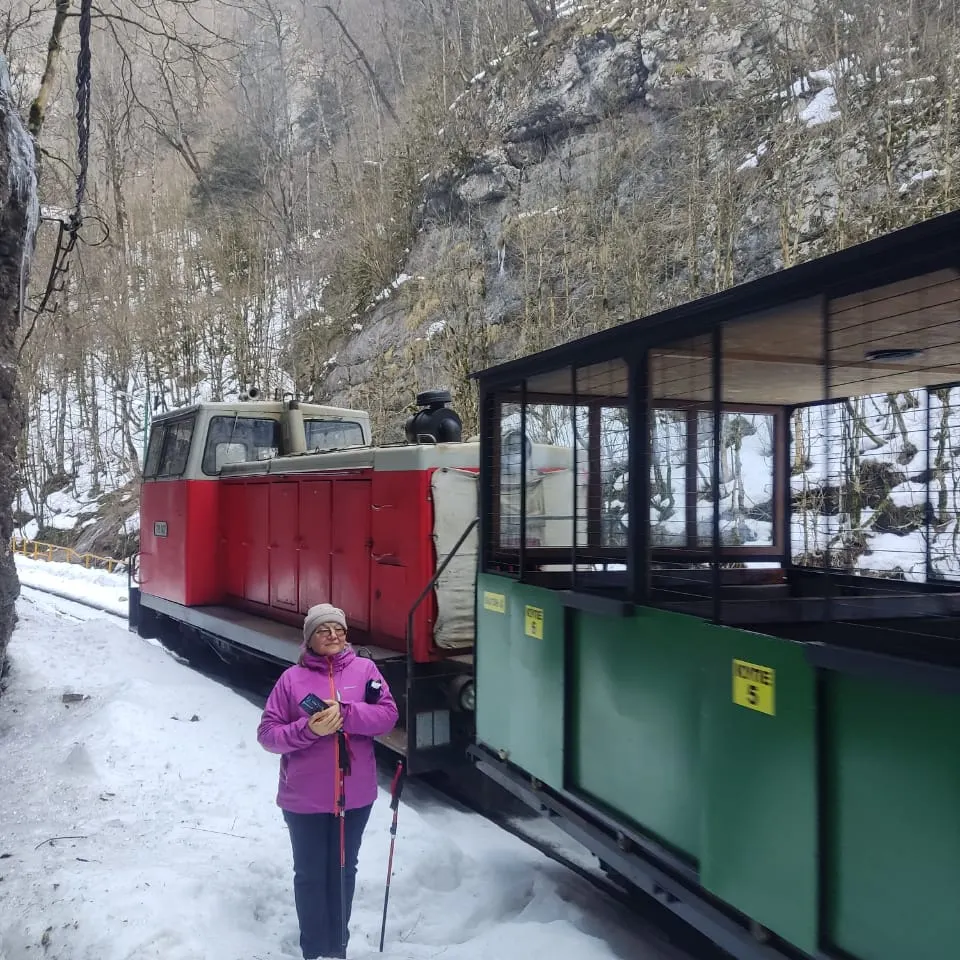 20 февраля рано поутру мы проснулись в отеле в хуторе Гуамка и двинулись в ущелье. Ещё и половины восьмого не было, а мы уже двигались по рельсам узкоколейки...