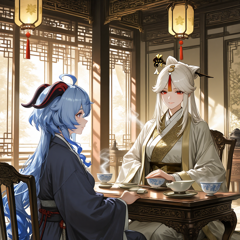 Забота Нин Гуан и Кэ Цин. Это ключевой момент! Нин Гуан, зная о склонности Гань Юй перетруждаться и мерзнуть, может пригласить её на короткий, но ценный приватный чай в своих покоях, просто чтобы спросить, как дела, не касаясь работы.
