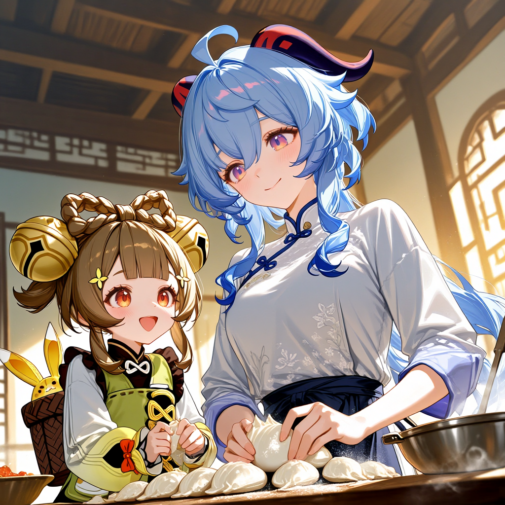 Встречи с Яо Яо. Это один из самых милых сценариев! Яо Яо, как маленькая сестра, может влететь к ней с охапкой только что собранных зимних трав для согревающего отвара, или притащить её лепить пельмени (цзяоцзы). Для Гань Юй это шумно, мило и невероятно тепло по-семейному. Она с нежностью помогает Яо Яо, поправляя её неуклюжие пельмени.