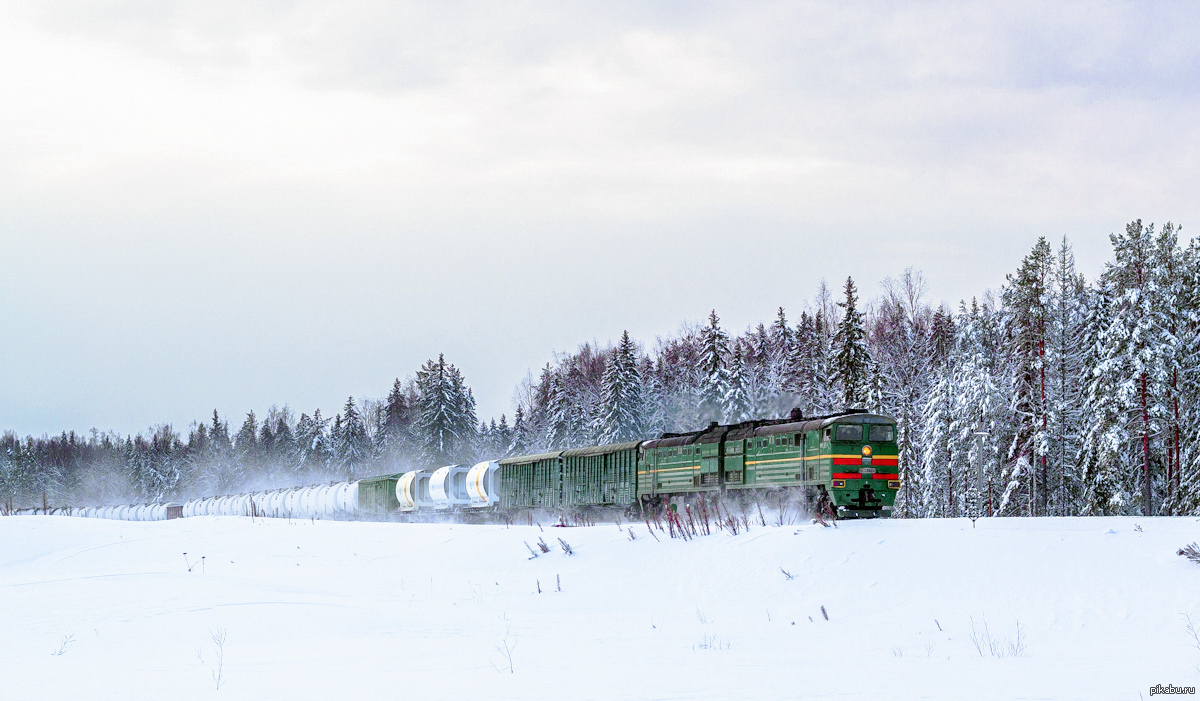 20 DELETED Зимний грузовой 10 лет назад Архангельская область 2тэ10мк Товарный Поезд Железная дорога РЖД
