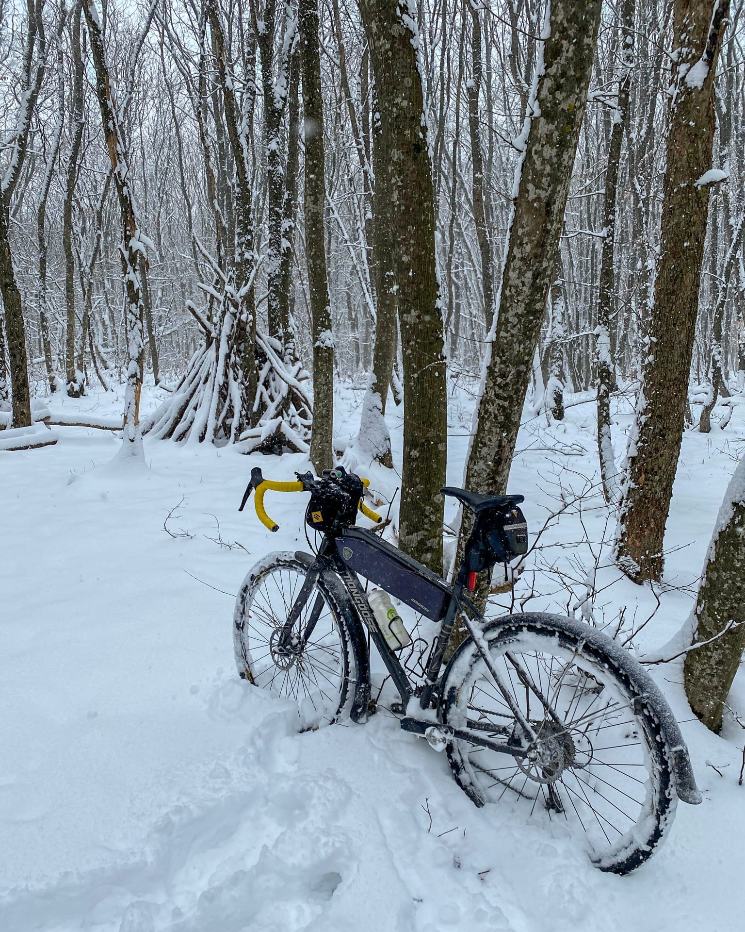 Шикарная зимняя поездка. Мягкий пушистый снег вкусно хрустящий под колёсами. Огромные снежные хлопья медленно опускающиеся с неба. Горячий чай в термосе. Штиль и потрясающая тишина зимнего леса.