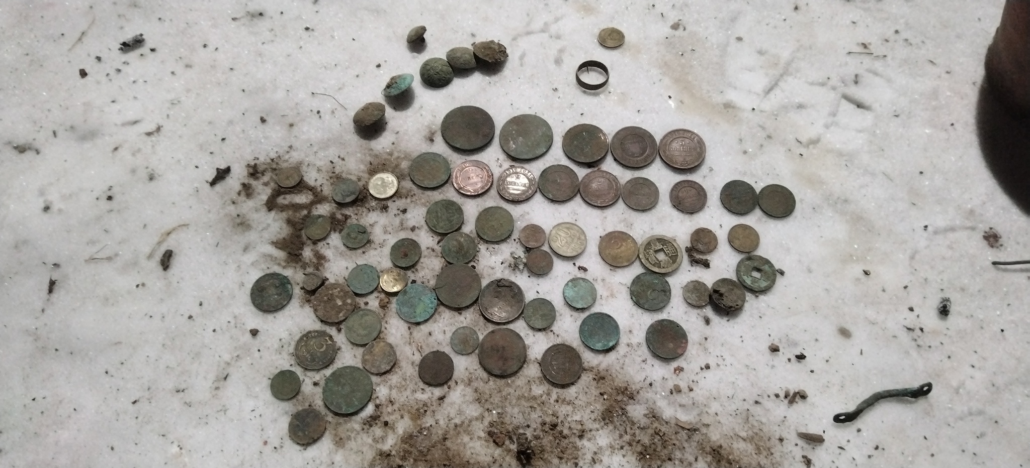 Домик оказался прям не плохой. Как итог монеты Царской России, СССР, пуговицы, конечно же Манчжурия, топовый утюг, и колечко.