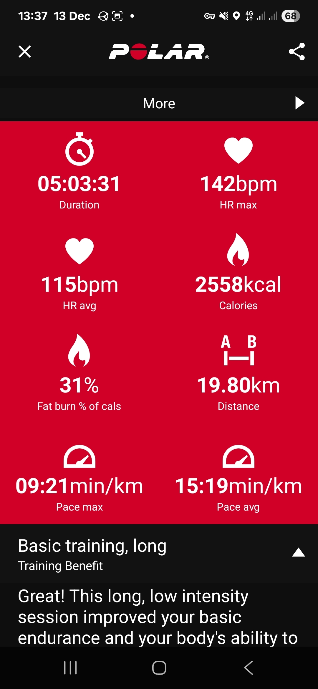 Средняя скорость дистаниции, включая все остановки 4 км/ч. Пульс писался на датчик Polar H10 и программу Polar Flow
