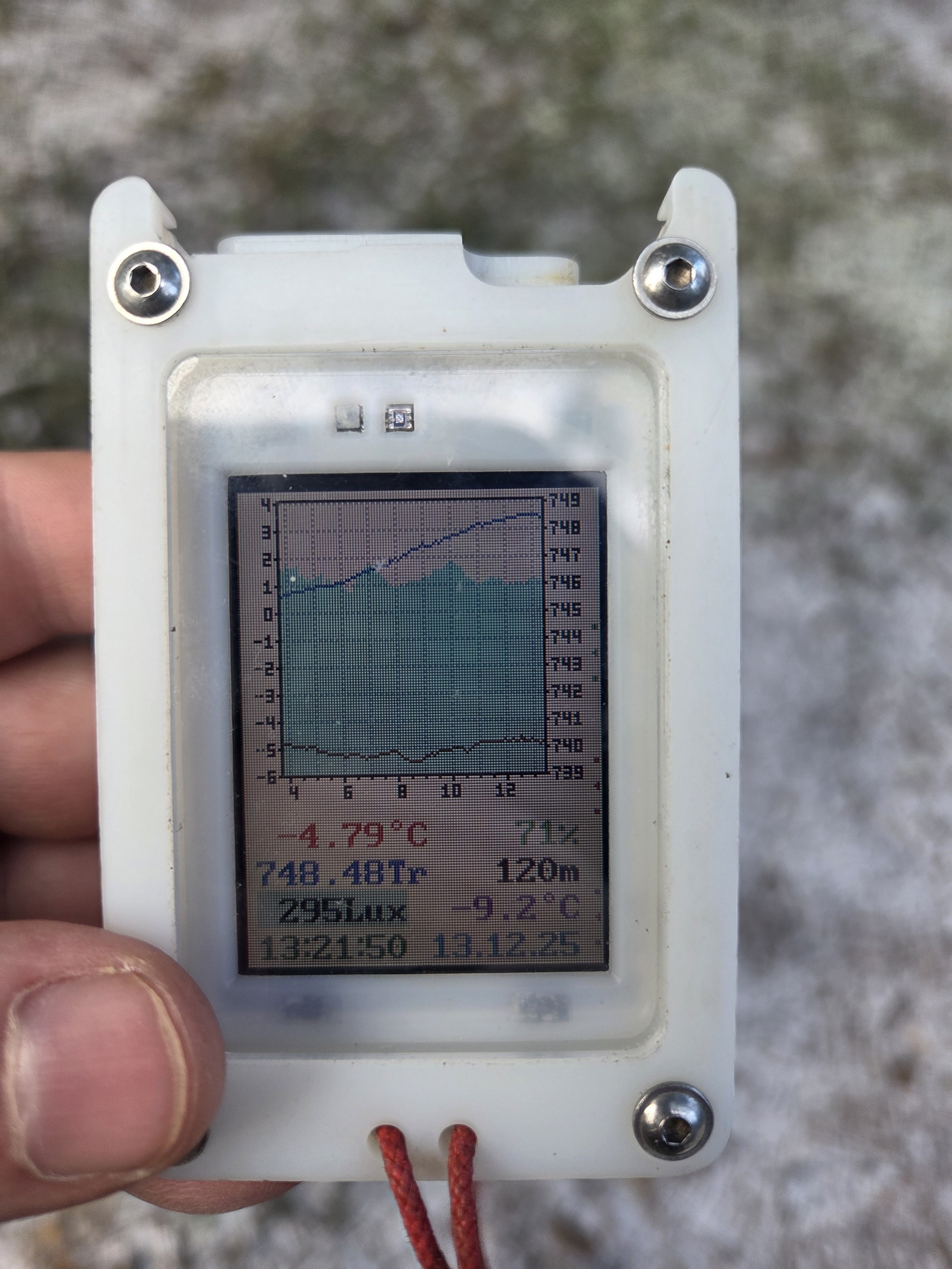 Погодная станция так и висела на дереве, температура было около -5 градусов.