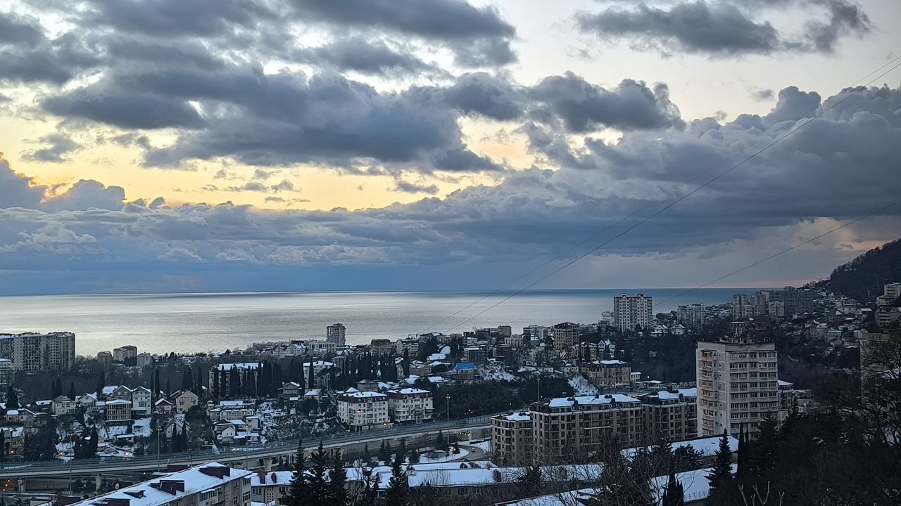 9 shicko13 Клуб анонимных художников Зимний закат Сочи) 9 месяцев назад [моё] Фотография Закат Море Сочи Снег Зима Ещё 0