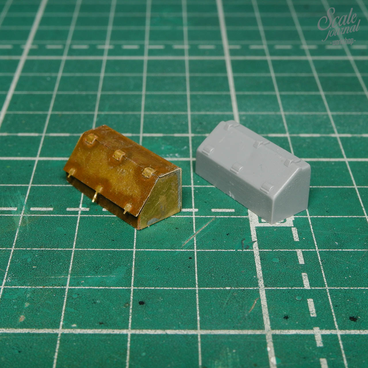 Оцените разницу спаянного из фототравления ящика и ящика что дается в пластике.