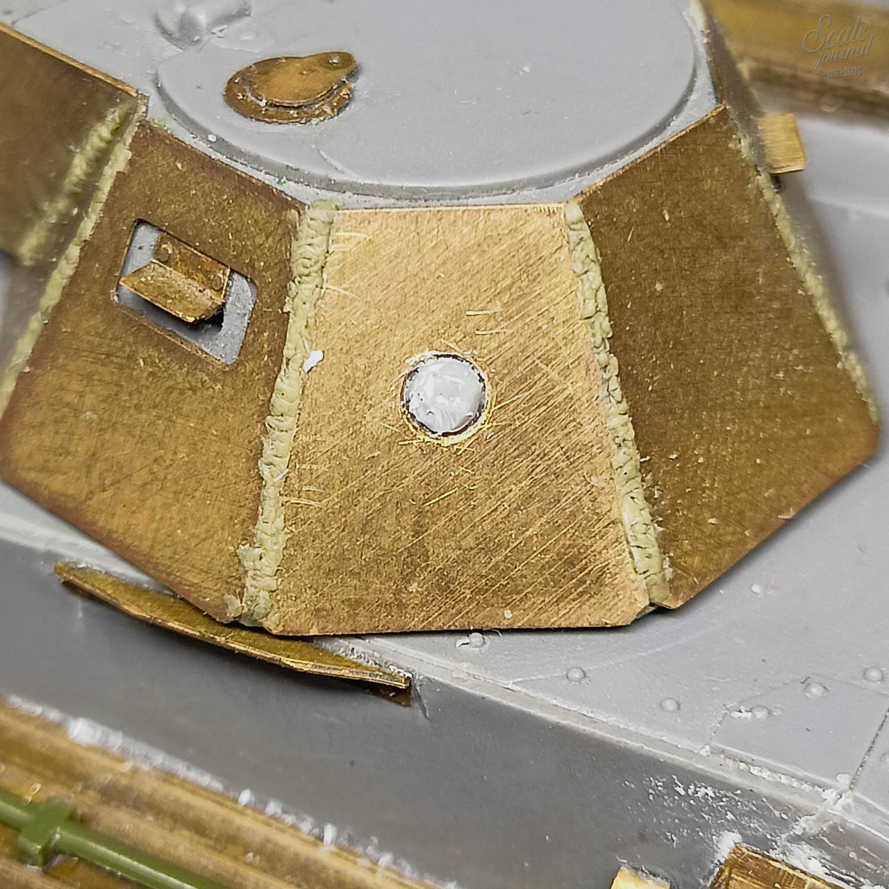 И добавил по корпусу сварных швов. Тут на плите немного ошибся и "обварил" по кругу. Хотя на реальном танке сварные швы были только с трех сторон, верхняя грань их не имела.