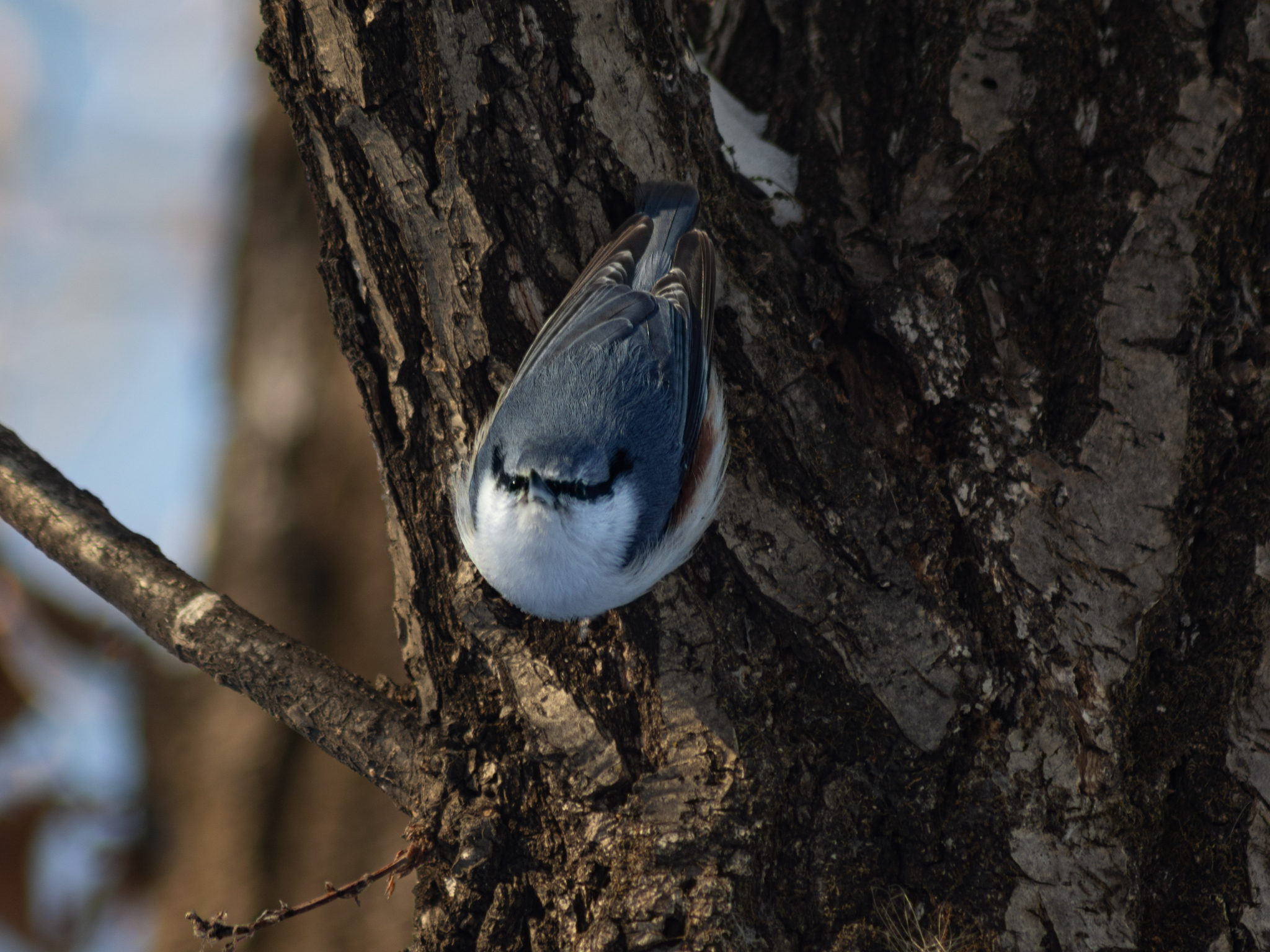 Но частыми гостями конечно же являлись поползни, птицы которые могут ходить вниз головой, ярые фанаты семечек, крайне изобретательные, они берут семечку и заталкивают ее в неровности дерева, чтобы достать само ядрышко и потом улетают с добычей...