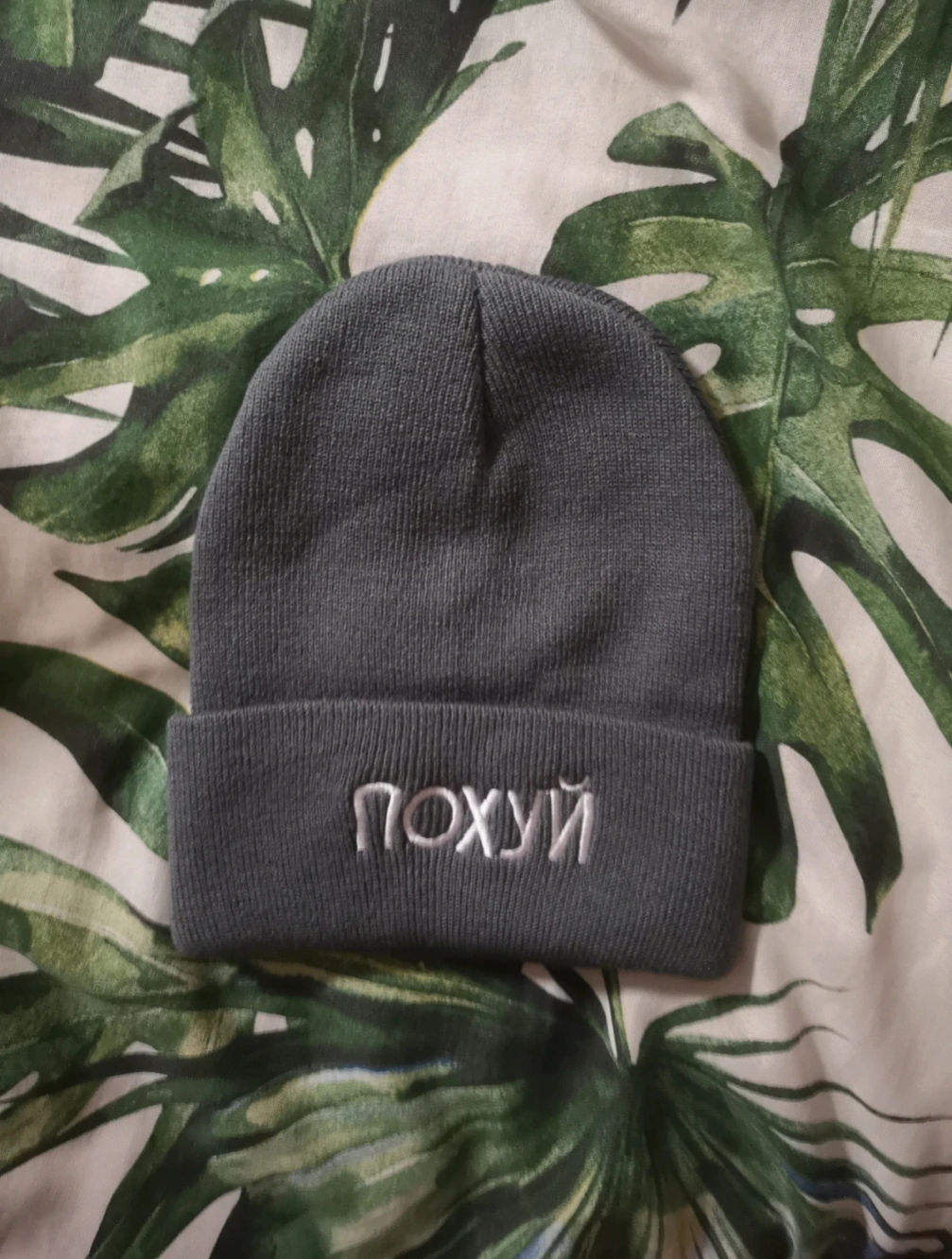 Зимняя шапка с забавными русскими буквами, унисекс. Новая, только что извлечена из упаковки для фотографий. Есть в черном и сером цветах.