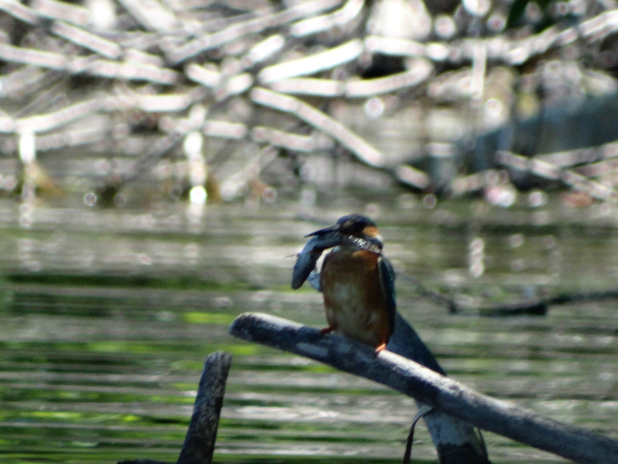 Наш друг ещё и отличный рыбак, очень юркий и его трудно заметить, сливается. Но попался в объектив, фото не очень хорошего качества.