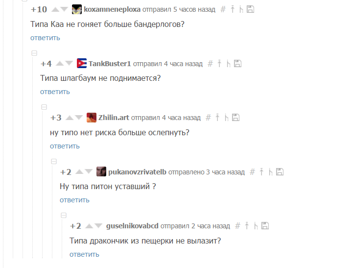 18 AlexRassvet 8 лет назад Баяны Зимой без подштанников ходил? #comment_89100750 Комментарии Скриншот Комментарии на Пикабу Полшестого